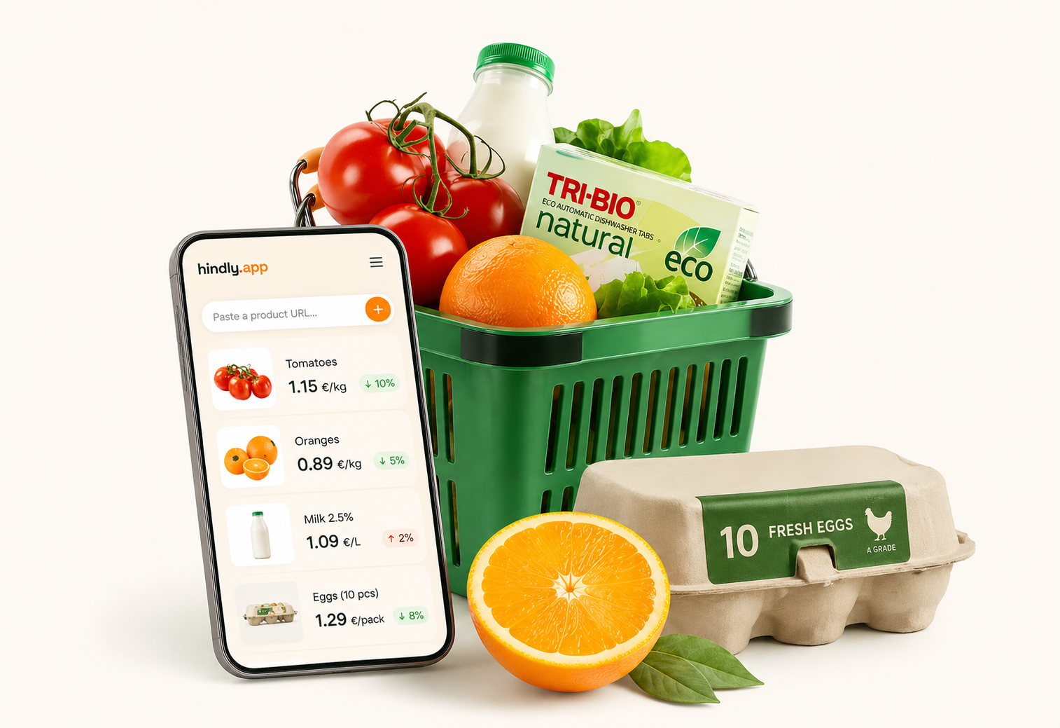 Paste a product URL and compare its price per kilo at a glance. Your favorites, always up to date.